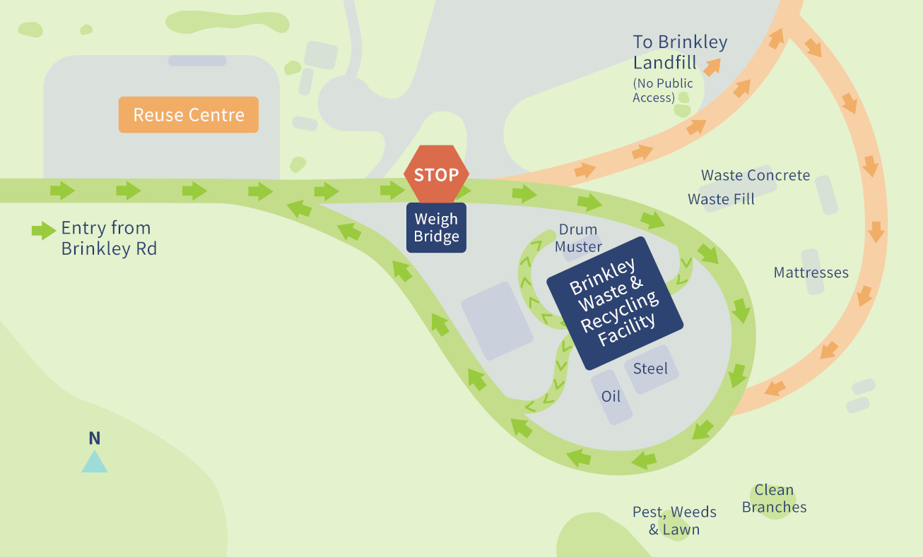 All visitors to Brinkley Waste & Recycling Facility must observe the site safety requirements and dress appropriately, including wearing enclosed footwear at all times. We also recommend wearing long pants, protective glasses (such as sunglasses), sun protection and work gloves for your safety. If you have heavy loads, bring a friend or family member to help you unload. Children under 12 and family pets must remain in your vehicle at all times.